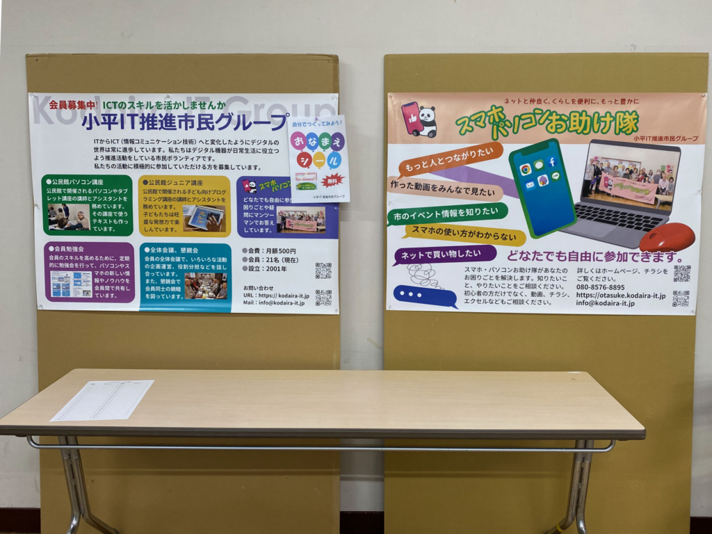 2023年4月~2024年3月までは、小平市いきいき協働事業「スマホ・パソコンお助け隊」として市内49会場を巡回して、デジタル・ITCの普及活動を行いました。